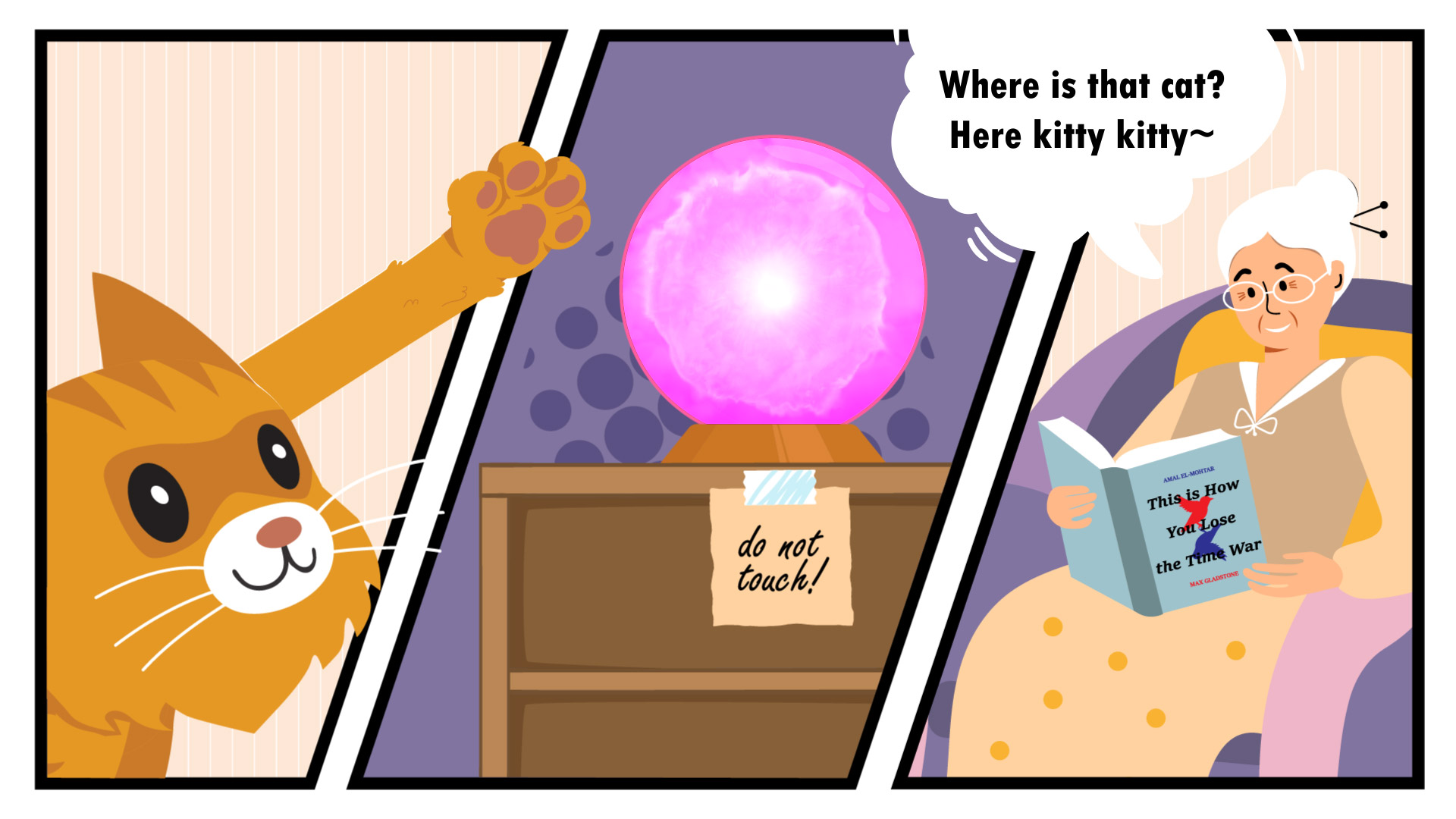 CATCIAO is a playful mash of words, when said out loud you'll hear kacau, a malay word for disturb. Very on-brand for a cat that broke a crystal ball and might've broken time too.